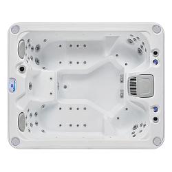 Стоит отметить, что расположение гидромассажных форсунок в данном СПА-бассейне уникально, поскольку они оказывают воздействие на всю спину от шеи и до поясницы, массируя самые проблемные зоны. Благодаря тому, что для каждого места в чаше форсунки установлены по-разному, у пользователей есть возможность делать акцент на массаж тех или иных зон. Сочетание водяных и воздушных форсунок в конструкции бассейна позволяет улучшить гидромассажный эффект, также создается роскошный эффект пузырьков.